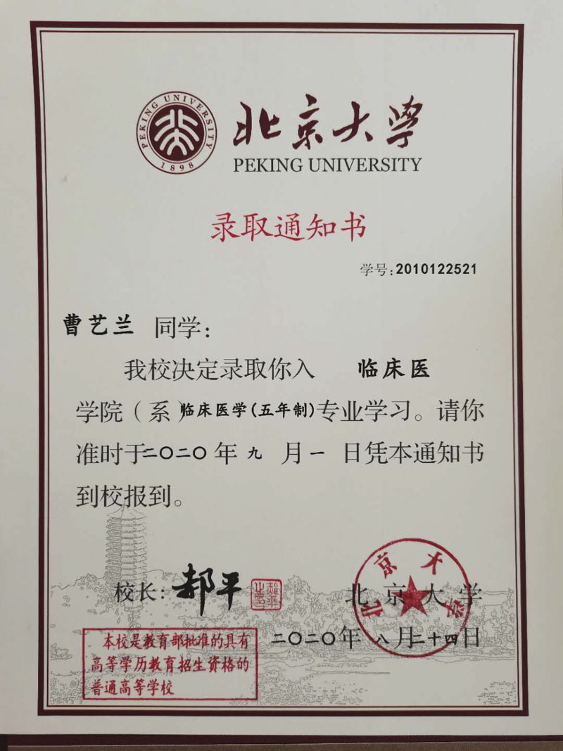 9月1日,三溪雅苑认购业主子女曹艺兰正式到北京大学报到,该学子入读北大第一年学费及其他学杂费用由三溪雅苑赞助。